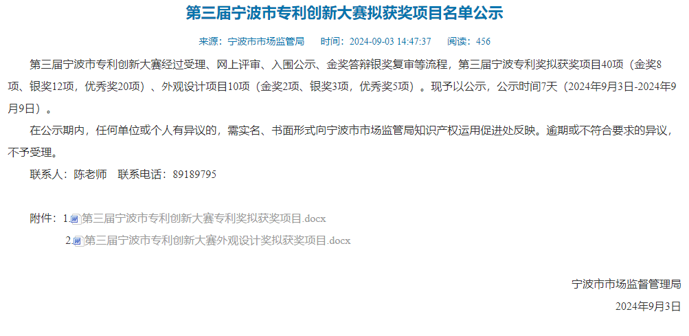 喜訊 | 我院一項專利發(fā)明榮獲第三屆寧波市專利創(chuàng)新大賽專利優(yōu)秀獎