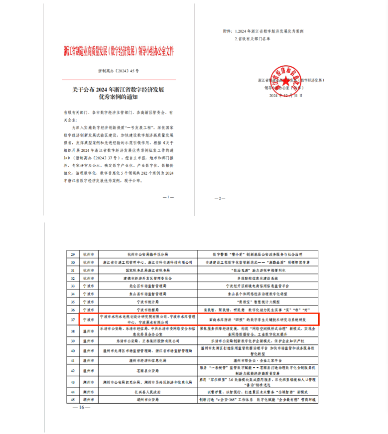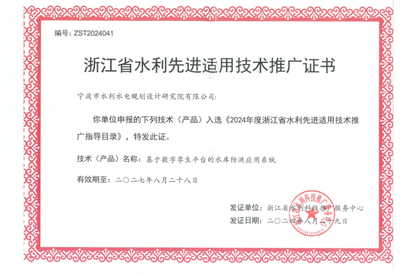 在產(chǎn)品創(chuàng)新方面,分別獲得第三屆寧波市專利創(chuàng)新大賽專利優(yōu)秀獎、“寧波市優(yōu)秀軟件產(chǎn)品”稱號、2024年“數(shù)據(jù)要素x”大賽浙江分賽獲優(yōu)勝獎,入選2024年度浙江省水利先進適用技術(shù)推廣指導(dǎo)目錄、2024年度寧波市優(yōu)質(zhì)產(chǎn)品推薦目錄和2024年浙江省數(shù)字經(jīng)濟發(fā)展優(yōu)秀案例近20項。