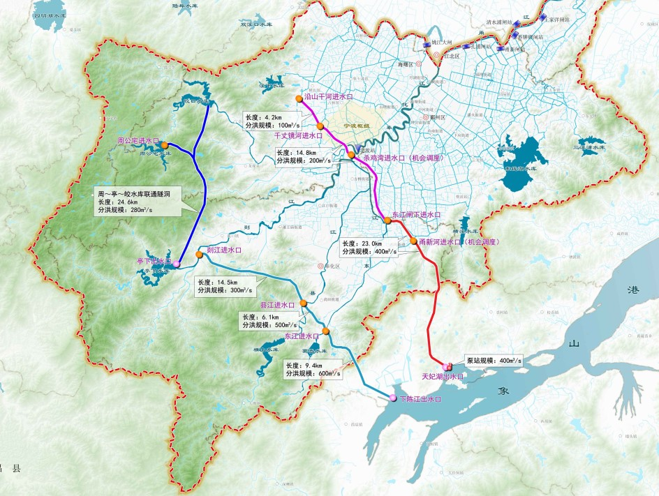 甬江流域南排通道工程項目建議書:該工程為《甬江流域防洪治澇規(guī)劃(2021-2035 年)》確定的甬江流域最大的分洪工程,工程擬設(shè)置東、西兩條分洪線路,總長約96.6公里,總規(guī)模1000立方米每秒。工程實施后,與規(guī)劃內(nèi)工程聯(lián)合運用,將有效提升流域和區(qū)域防洪排澇能力。
