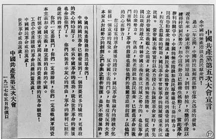 ▲中共五大大會(huì)宣言
