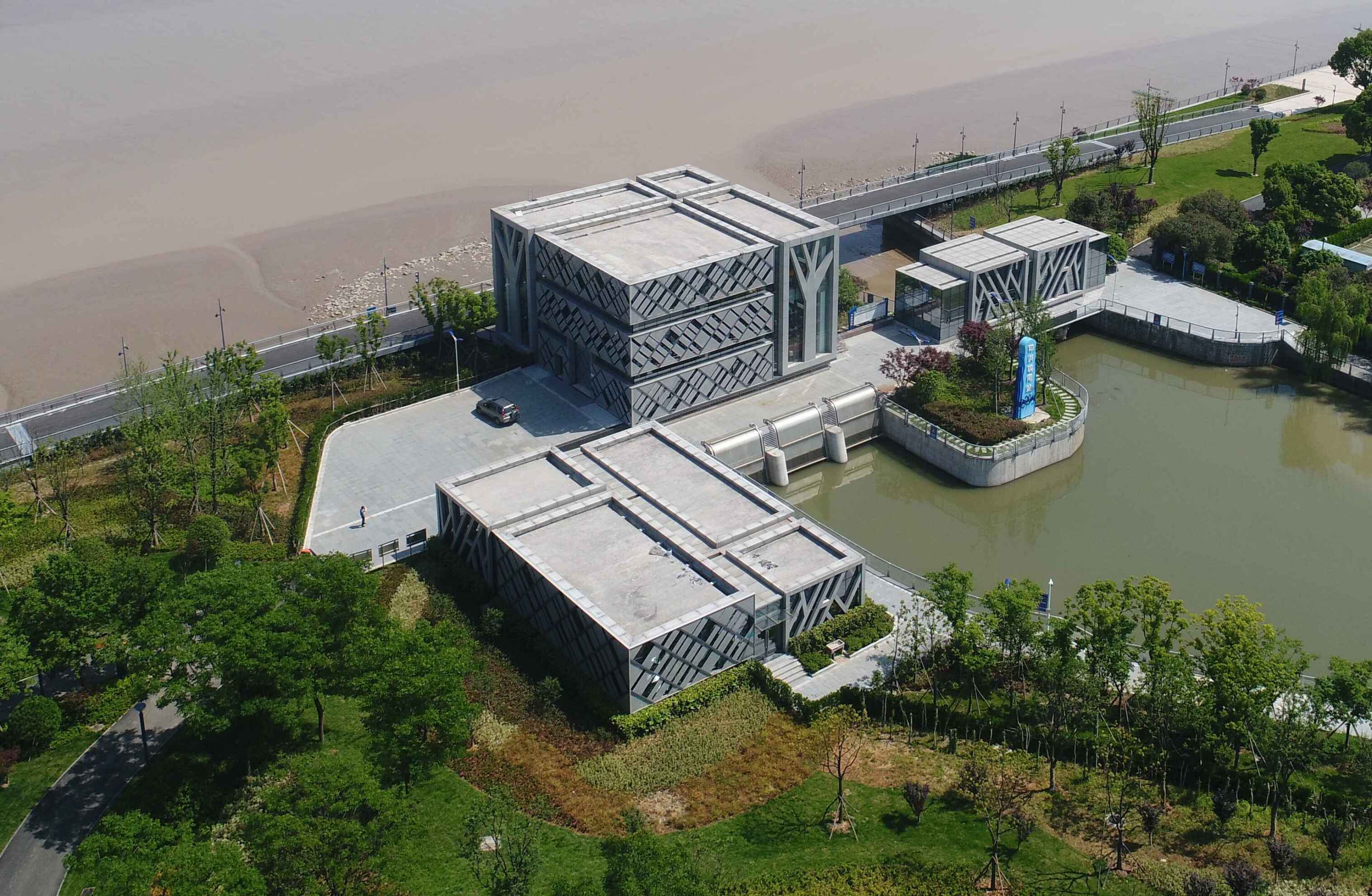 工程通過(guò)抽象手法,將樹、落葉等元素融入到建筑表情之中,從而閘站更像是沿江公園里面的雕塑,通過(guò)虛實(shí)的結(jié)構(gòu)處理,弱化了高大廠房結(jié)構(gòu)的厚重感。