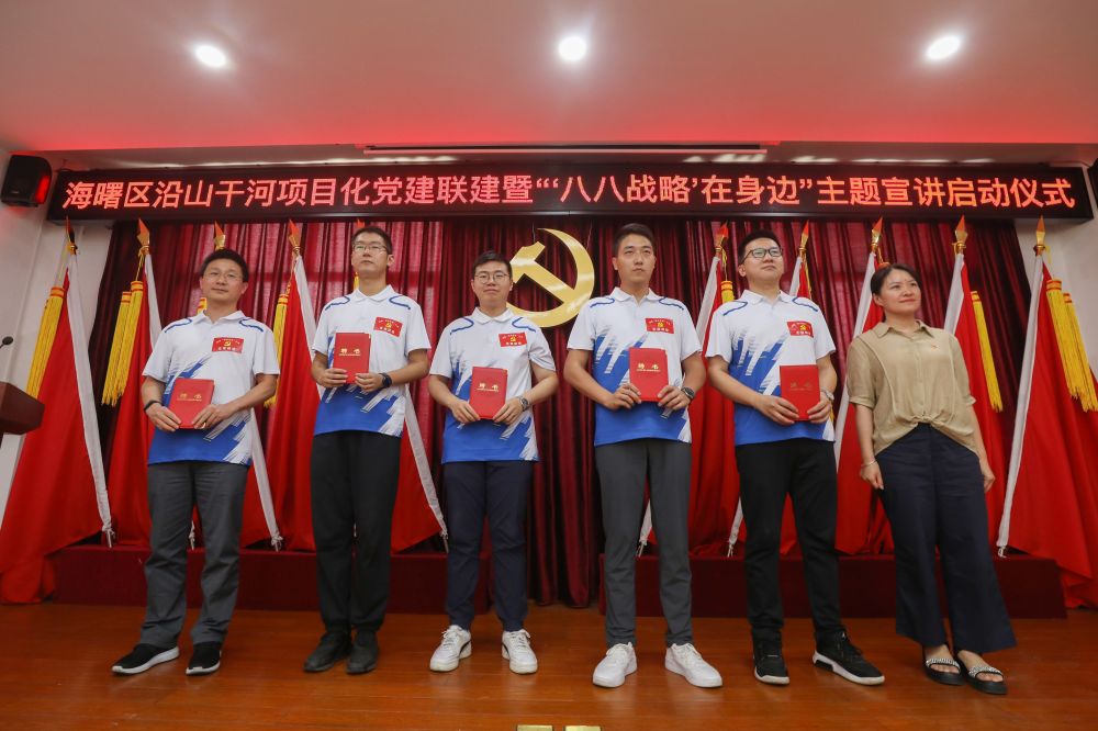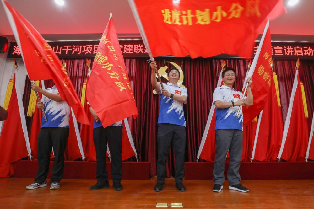 為響應(yīng)“把支部建在項目中,把黨旗插到工地上”的號召,充分發(fā)揮黨建在項目推進中的引領(lǐng)作用,為項目攻堅破難、順利實施找準“定盤星”、把穩(wěn)“方向盤”,“沿山干河項目臨時黨支部”正式揭牌,并成立了勘察設(shè)計、技術(shù)破難、融資保障、進度計劃、征遷攻堅等五個小分隊,同時向五位主題宣講員頒發(fā)了聘書。我院工程院院長高煒杰入選臨時黨支部支委成員,何國華作為勘察設(shè)計小分隊代表接受授旗,何國華、陳欣、褚洪康受聘為主題宣講團成員。