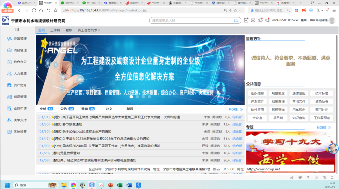 從2002年探索建設(shè)流域數(shù)字化至今,寧波院業(yè)務(wù)的數(shù)字化已走過了20多年,2023年,以事業(yè)部制轉(zhuǎn)型為契機(jī),提出建設(shè)以O(shè)A辦公系統(tǒng)、業(yè)財(cái)一體化系統(tǒng)、知識庫系統(tǒng)為代表的管理工具,在業(yè)務(wù)數(shù)字化的基礎(chǔ)上,推動企業(yè)管理的數(shù)字化轉(zhuǎn)型。