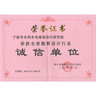 2018浙江省勘察設計行業(yè)誠信單位證書